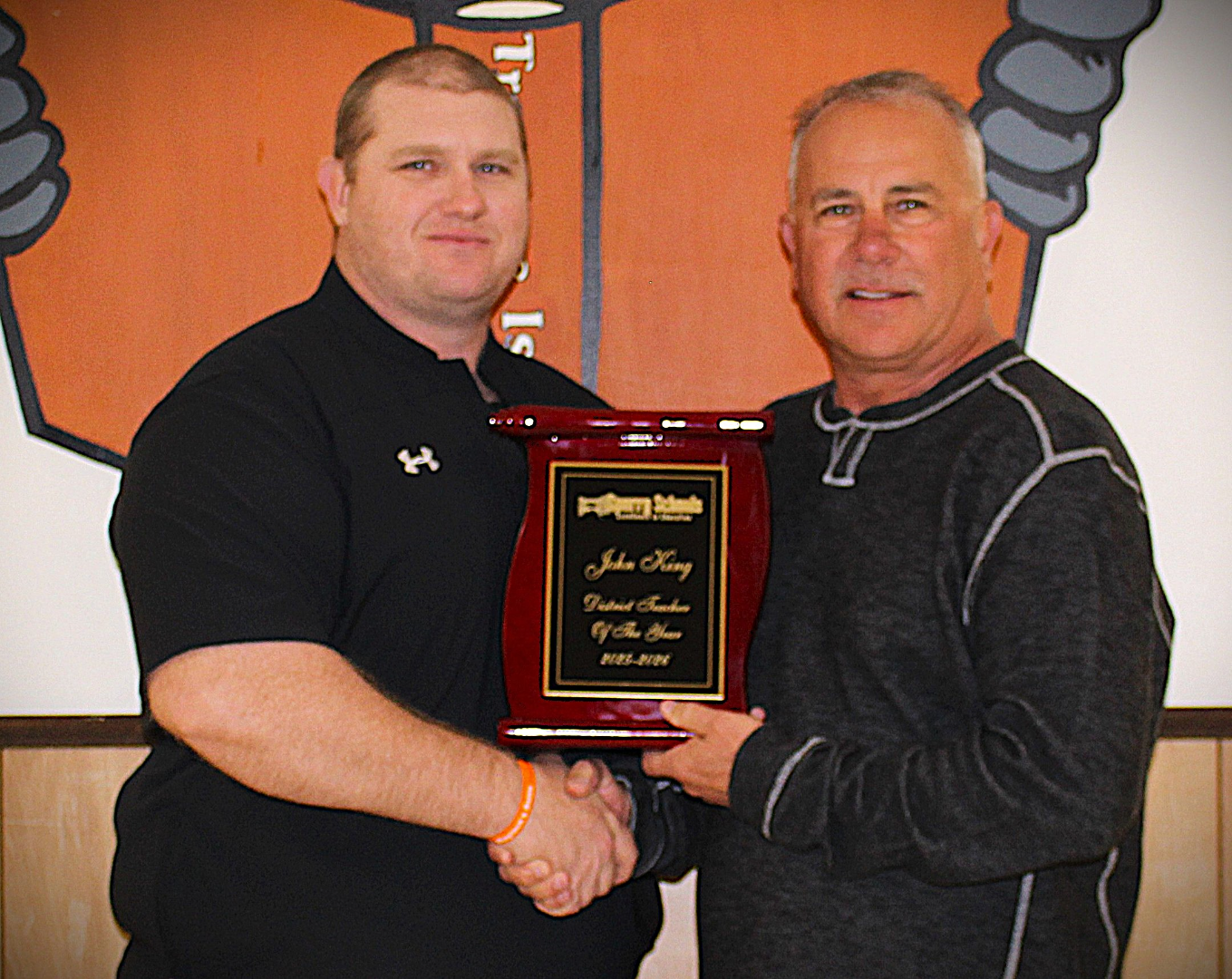 Principal, Richard Akin, spoke highly of King’s impact on both students and staff, noting that his passion for teaching is evident long before one ever steps into his classroom. “Coach King teaches with such passion that I can hear him all the way down the hall,” Mr. Akin said. “That enthusiasm carries over into everything he does. Mr. Akin also added, “Coach King is always ready and willing to assist in any way possible whether it’s helping a student, supporting a colleague, or stepping in wherever he is needed. His dedication to our school and our kids is unmatched.”